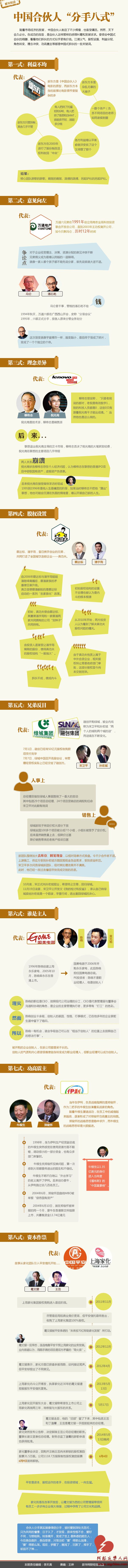 图解财经:中国合伙人“分手八式” 国内新闻 • 2014-11-26 11:42• 收藏本文 l5I阿根廷华人网 转载本网稿件,原则上需要书面授权,不得篡改稿件主题。本网随时有权要求第三方停止侵权行为。 本网所载内容或图片,若涉及侵权,请联系删除。 26 ___________ 2014/11 图解财经:中国合伙人“分手八式” 天下合久必分。中国合伙人创造了不少辉煌,备受世人瞩目。但在成功背后,合伙人种种感情纠葛和发展诉求交织,酿造了分手“苦果”。 [ 微信长按识别二维码或扫码查看分享内容 ]