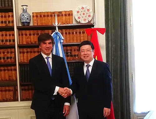 12月6日,驻阿根廷大使邹肖力在阿外交部圣马丁宫会见外交部国际经济关系国秘雷伊塞尔。