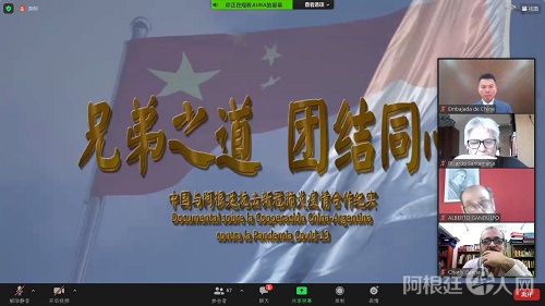 开幕式上还播放了驻阿根廷使馆与中央广播电视总台合作制作的中阿抗疫合作纪录片《兄弟之道 团结同心》。阿根廷劳工国务秘书贝洛蒂、西北国立大学校长塔马里特、阿根廷驻华使馆首席馆员兼贸易和投资促进特别代表纳瓦哈、布宜诺斯艾利斯省参议员特拉维尔索等近百名阿各界代表参加开幕式。