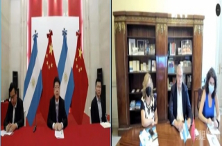 12月9日,中国驻阿根廷大使邹肖力线上会见阿根廷教育部长佩尔西克。
