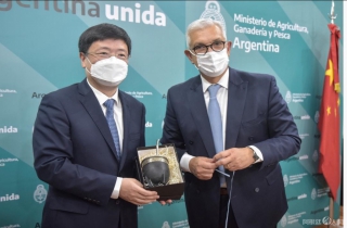 5月4日,邹肖力大使在阿根廷农牧渔业部同多明格斯部长举行会晤,就加强两国农业合作交换意见。