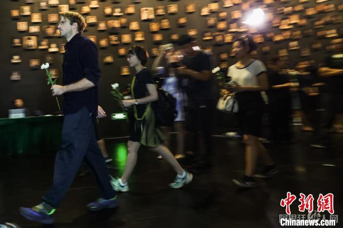 8月15日,中外大学生在侵华日军南京大屠杀遇难同胞纪念馆史料陈列厅参加熄灯仪式。 泱波 摄