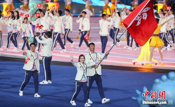 9月23日,杭州第19届亚运会开幕式在浙江杭州奥体中心体育场举行。图为中国香港代表团入场。中新社记者 贾天勇 摄