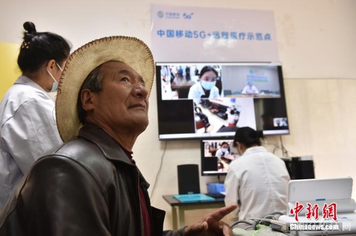一名患者通过远程医疗平台接受专家诊断。中新网记者 李骏 摄
