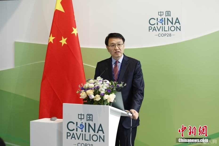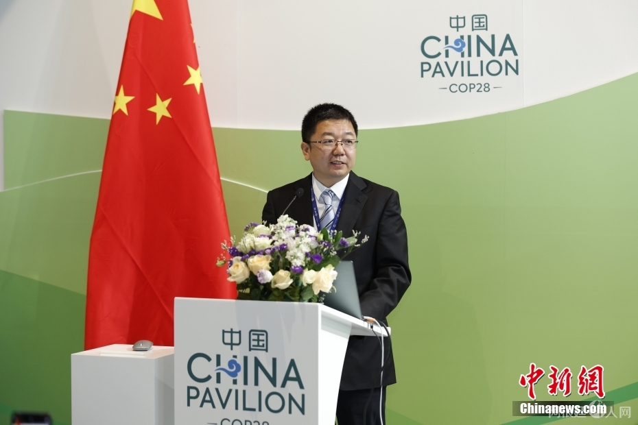当地时间12月5日,“绿色金融与气候应对:中国银行业的角色与机遇”边会在《联合国气候变化框架公约》第28次缔约方大会(COP28)中国角举行。图为中国生态环境部副部长赵英民在边会上发表致辞。 中新社记者 韩海丹 摄