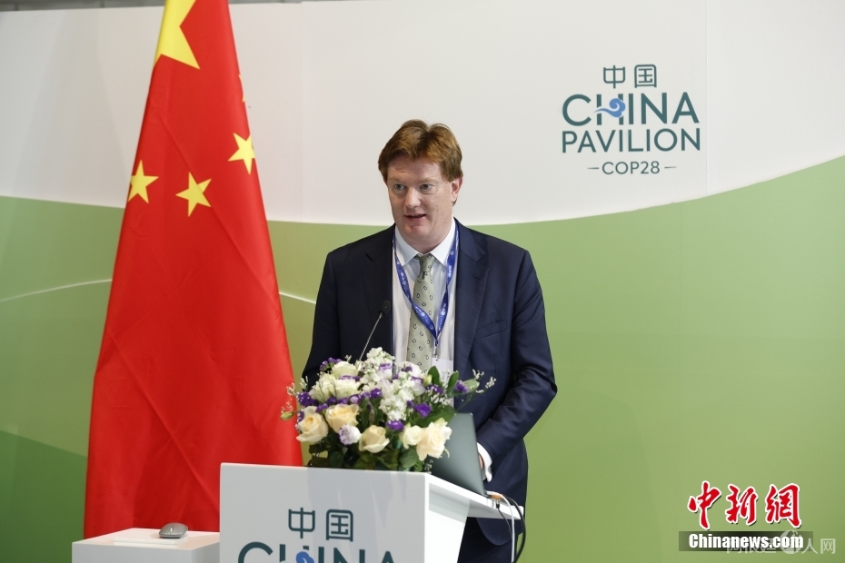 当地时间12月5日,“绿色金融与气候应对:中国银行业的角色与机遇”边会在《联合国气候变化框架公约》第28次缔约方大会(COP28)中国角举行。图为亚洲基础设施投资银行副行长艾德明在边会上发表致辞。 中新社记者 韩海丹 摄
