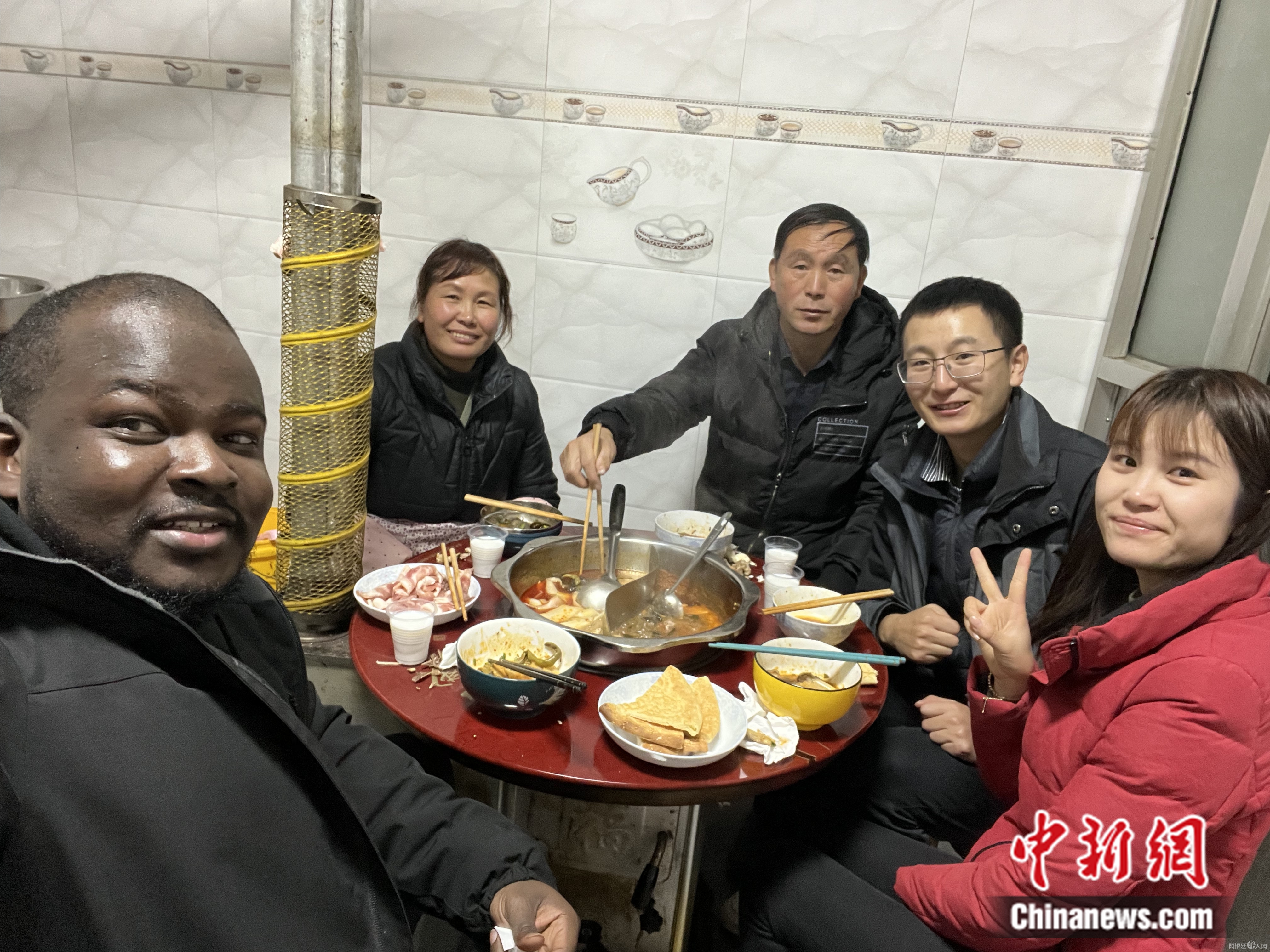 阿旭与中国同学回老家过年。受访者供图