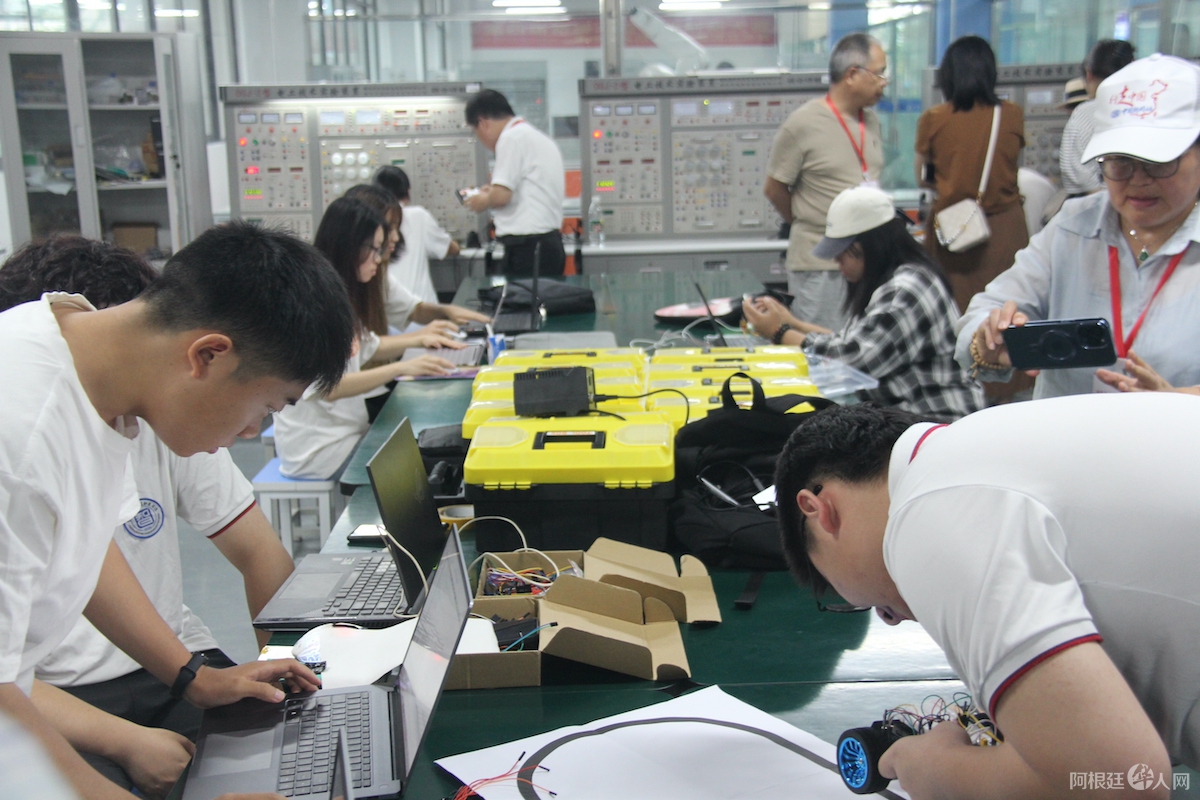 智能井盖系统、超级视距、寻迹无线充电车……走进重庆智能工程职业学院,该校师生共同研发的新技术、新产品让人眼花缭乱,吸引了参访团成员的注意力。