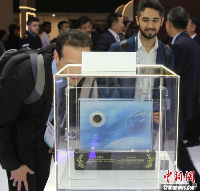 2024年10月,嫦娥六号月球背面样品亮相第75届国际宇航大会。中新社记者 德永健 摄