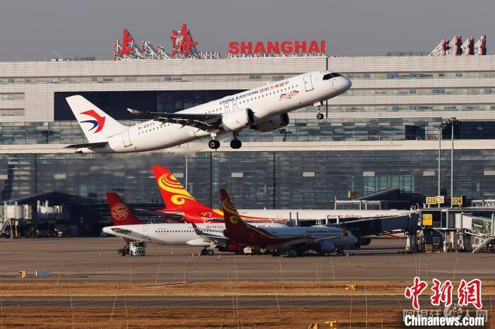 东航国产大型客机C919执行的MU721航班从虹桥国际机场起飞。中新网记者 殷立勤 摄