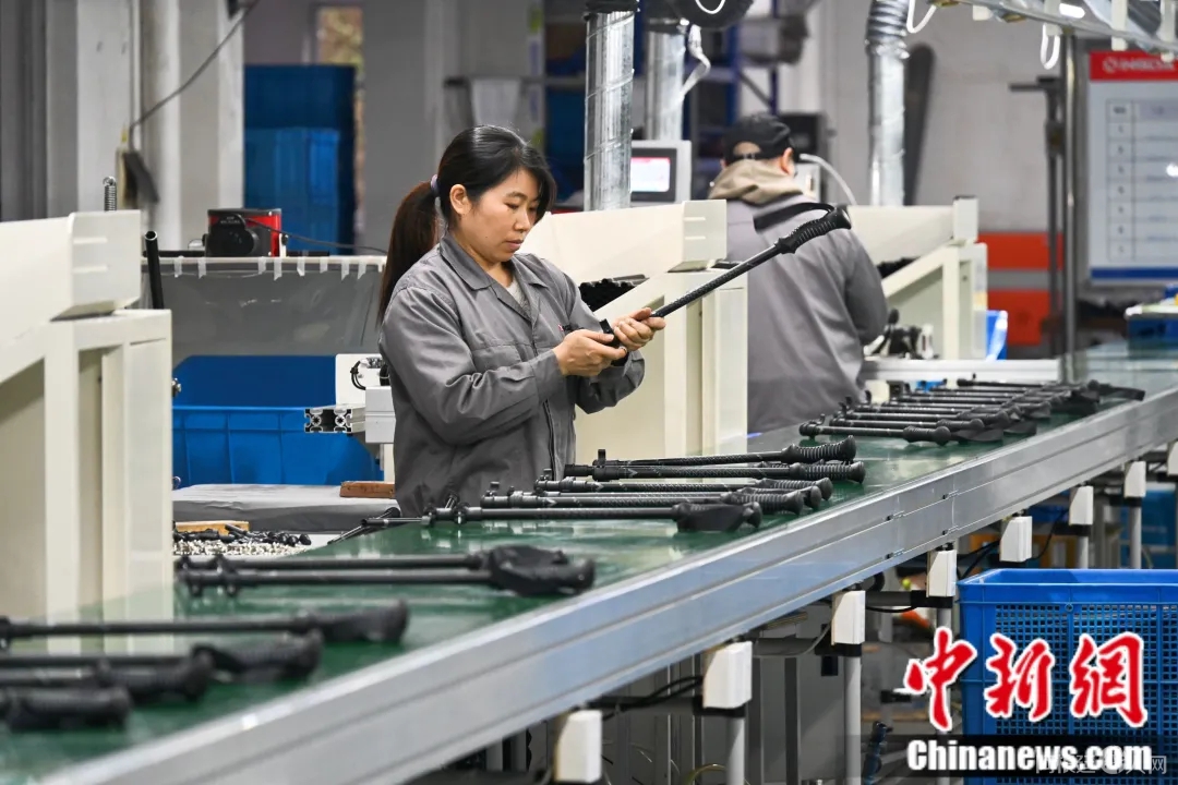 在台州市松门镇的浙江远景体育用品股份有限公司生产车间,工人们正有条不紊地组装成品,开展质检。