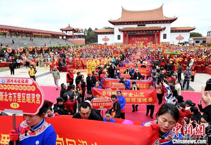 3月29日,正值农历三月初一,“天下妈祖回娘家”启动仪式在福建省莆田市湄洲妈祖祖庙天后广场举行,来自海内外的一百多家妈祖文化团体代表,共计近万名嘉宾汇聚一堂,共襄盛举。天下妈祖,祖在湄洲。相传,妈祖的诞辰为农历三月二十三日。每年的妈祖诞辰日前后,海内外的妈祖信众都会翻山越岭,远道而来,恭送分灵妈祖回到湄洲岛谒祖进香,以“回娘家”的方式寻根问祖,这一习俗被坊间亲切地称为“天下妈祖回娘家”。图为各地宫庙代表陆续抵达福建湄洲岛码头。中新社记者 吕明 摄