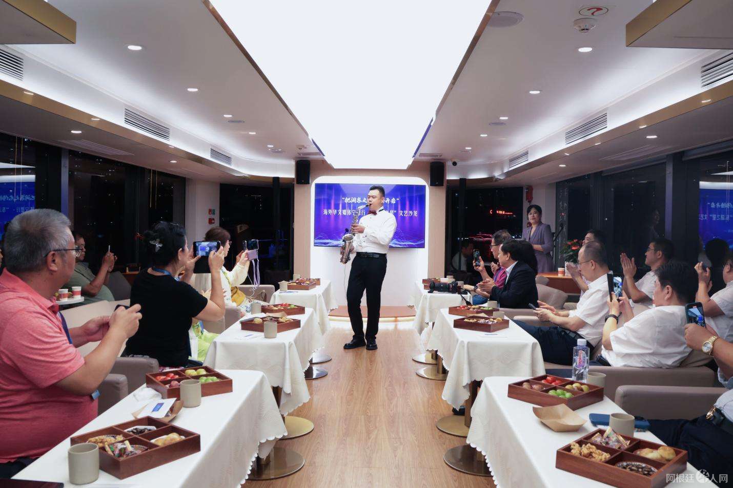 “东湖之星”文艺沙龙现场,海外华文媒体代表体验“零碳文旅”、共赏文艺沙龙。图为萨克斯独奏。吕若萱摄