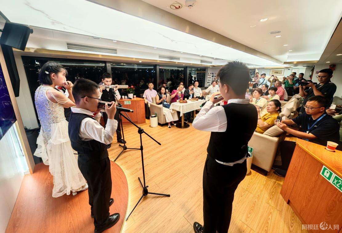 茶艺表演《天山茶韵》、女声独唱《望月》、笛子独奏《半山听雨》、朗诵《我有幸生活在这里》、口琴五重奏《诗人与农夫》、萨克斯独奏《大地的港口》《走过咖啡屋》、男声独唱《故乡的海》、男声独唱与笛子《再唱山哈传家宝》……行驶于湖面的“东湖之星”电动船舶内,内容丰富、形式多样的文艺节目接续上演。