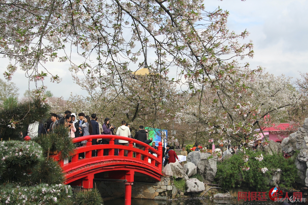 粉色的樱花云遮住了半边天,唐式建筑和漫天花瓣交织,美得让人陶醉。头顶是飘动的花海,脚下是涌动的人潮。