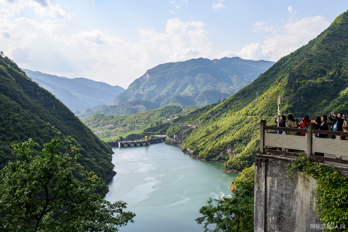 随后,参访团乘缆车下行至芙蓉江畔,登上游船,开启“水上画廊”之旅。芙蓉江是乌江最大支流,发源于贵州绥阳,在武隆江口镇注入乌江。2003年江口电站库区蓄水后,形成高峡平湖景观,两岸青山倒映,碧水如玉。船行其间,时而峡谷幽深,时而江面开阔,不时可见飞瀑从山腰倾泻。清代诗人翁若梅曾赞:“水送山迎入芙蓉,一川游兴画图中。”