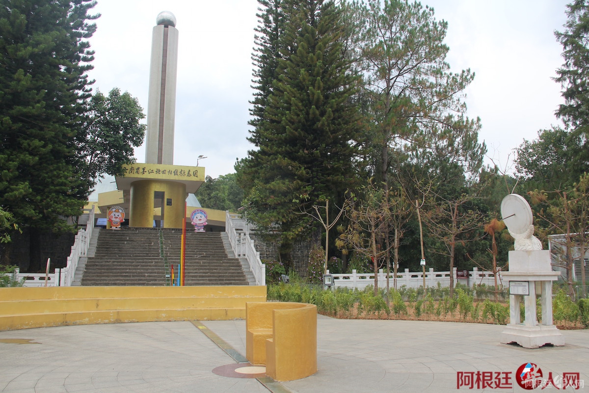 墨江县地处云南省南部、普洱市北部,是昆曼国际大通道和中老铁路上的重要枢纽,素有普洱“北大门”之称。全县国土面积5312平方公里,常住人口27.01万人,其中哈尼族占总人口的63.3%,是全国唯一的哈尼族自治县。北回归线穿城而过,赋予了这片土地独特的地理标识。北回归线是每年太阳能够直射到的位置最北的纬线(约北纬23°26′),是热带与北温带的分界线,中国境内自西往东依次经过云南、广西、广东和台湾。墨江北回归线标志园始建于1993年,占地1500平方米,后扩建至200余亩,融天文、地理、植物及科普知识和园林艺术、旅游文化为一体,从山脚到山顶依次建有回归之门、太阳之路、夸父追日、日月交辉、日晷计时、窥阳塔、双子星广场、天文馆、石阵广场、哈尼取火台等十余处景点。