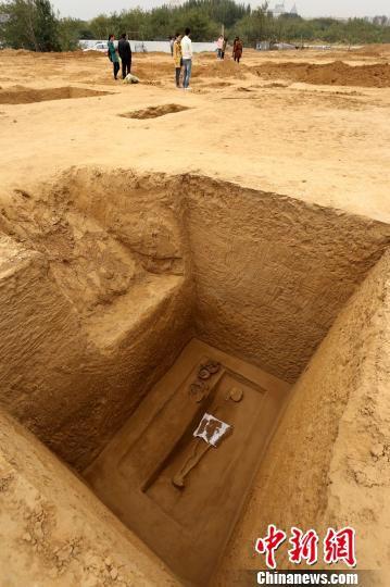 发掘的一座古墓里有少量陪葬品。杨正华摄正在紧张挖掘的考古现场。杨正华摄中新网新郑10月28日电 近日,在新郑市一处建筑工地,考古人员发现一处战国晚期的平民墓葬群。经过一个多...