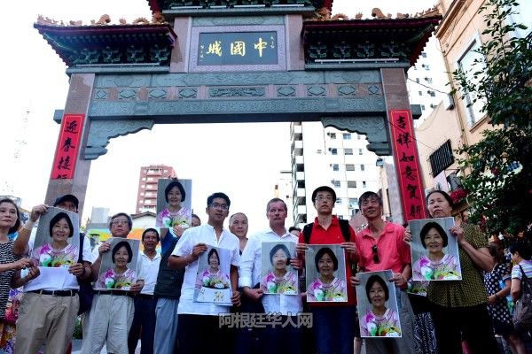 (阿根廷华人网1月31日讯 柳 军/文图)昨天下午19时,由阿根廷中国文化基金会主席黄菁发起,阿根廷主流媒体支持的寻找走失11天华人孙中琴女士宣传活动在布市中国城举行。中国驻阿使馆陈志军领事,旅阿侨领黄菁,王庆苍,曾强,董春风,刘芳勇,刘金钢,许文飞,陆元海,孙中琴女士的儿子马鹧宁,旅阿华人华侨代表,阿根廷JUAN CARR互助基金会主席JUAN CARR先生等人参加了活动,阿根廷《号角报》、《国家报》、阿根廷国家电视台等主流媒体进行了现场采访,多家电视台对活动进行了现场直播。
