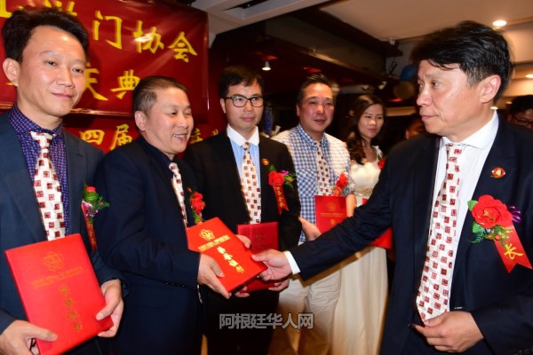 尤震会长向协会常务会长颁发证书。gGy阿根廷华人网
