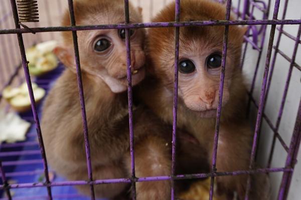 [摘要]中越边境云南江城一侧现盗卖食用野生动物集市,猕猴等保护动物被当街宰杀兜售,熊掌1千元1公斤,食客挤满20余家餐馆,现场停多辆公务车。一家餐馆内,两只幼年猕猴被关在笼...