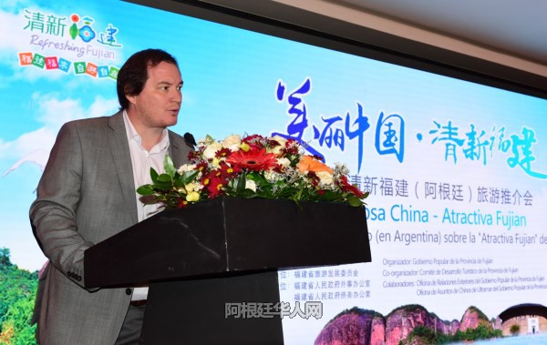 在推介会上,旅阿第二代华人曾维通过流利的西语讲解,结合画面与光影等多彩的展现手段,现场倾情推介清新福建旅游资源,福建土楼、鼓浪屿等世界遗产,以及“海丝”文化、茶文化等,让现场嘉宾深切感受到“清新福建”旅游的独特魅力。