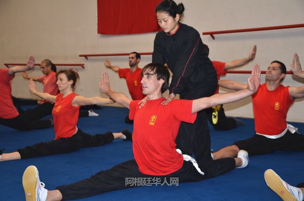 陈敏教学并不追求花哨的动作,从压腿扎马步的基础开始,强调武术带来的强身健体效果,慢慢地外国学员就开始喜欢上这种练功方式了。