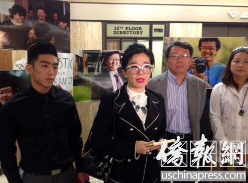 图为纪欣然父母的代理律师蔡玟慧(中)在法庭外接受媒体采访。(图片来自美国《侨报》)中新网11月7日电 据美国《侨报》报道,美国南加大中国留学生纪欣然命案6日上午在洛杉矶县刑...