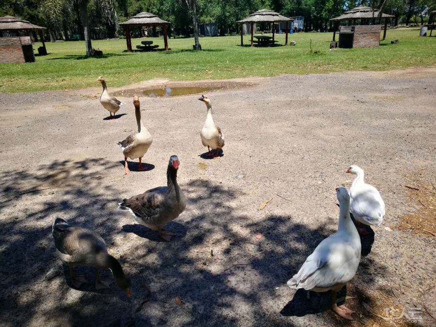 一进动物园,就有一堆鸭子和鹅围攻过来,他们并不怕人,紧跟在脚底下,冲你呱呱叫。卢汉动物园很小,小到像个大庭院,或者说是农场。先是来到爬行馆,里面有蛇、蜥蜴等爬行动物,门口有巴西大嘴鸟,可以让它站在你身上合影。