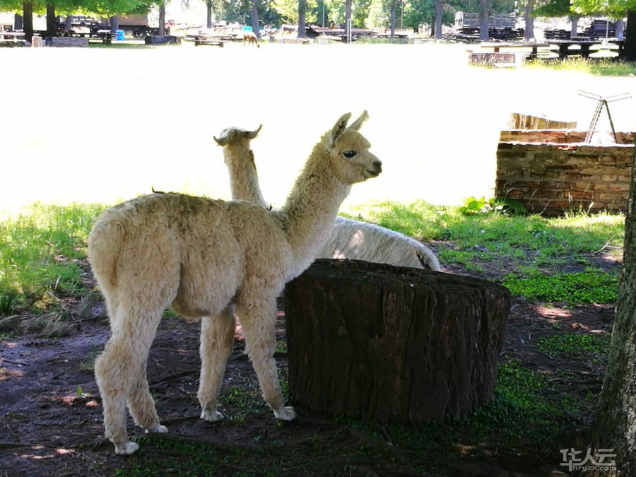 对面的草地上是一堆羊驼,有的胆子大的会一只跟着你要吃的,谷物在纪念品商店也有售,可以买来喂鸭子和羊驼。