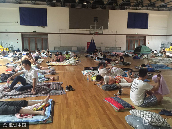 近日,上海天气闷热,室外温度达到了36度。上海师范大学徐汇校区为暑假留校大学生开放体育馆过夜避暑,中央空调全线开启,室温在25.6℃。