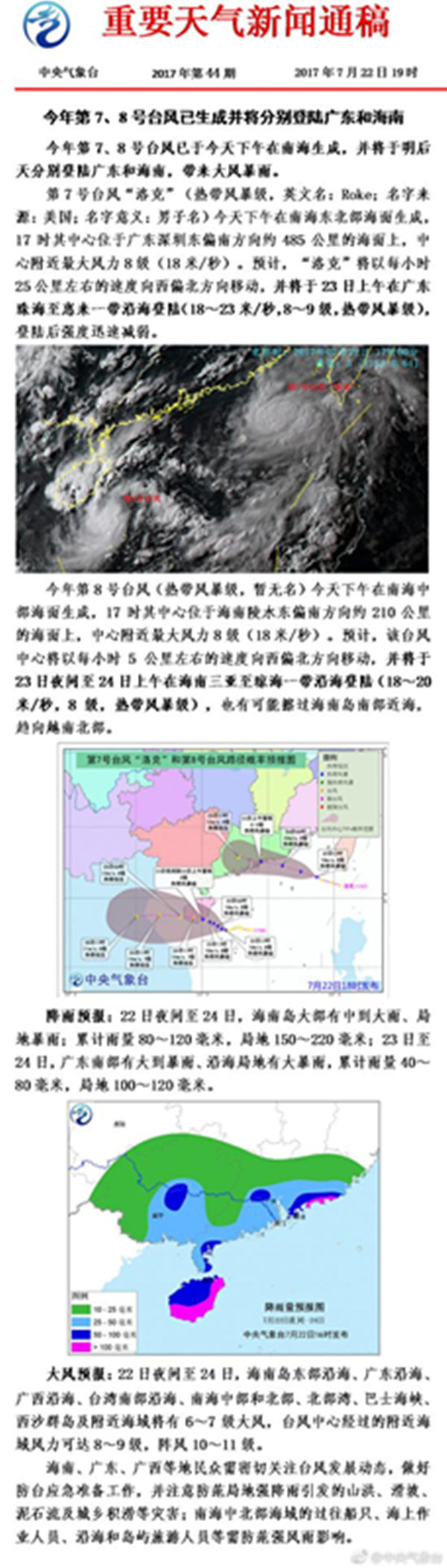 今年第7和第8号台风已生成 将分别登陆广东海南 国内新闻 • 2017-07-22 15:45• 收藏本文 2vY阿根廷华人网 今年第7、8号台风已生成并将分别登陆广东和海南。2vY阿根廷华人网 2vY阿根廷华人网 转载本网稿件,原则上需要书面授权,不得篡改稿件主题。本网随时有权要求第三方停止侵权行为。 本网所载内容或图片,若涉及侵权,请联系删除。 22 ___________ 2017/07 今年第7和第8号台风已生成 将分别登陆广东海南 今年第7、8号台风已生成并将分别登陆广东和海南。 [ 微信长按识别二维码或扫码查看分享内容 ]
