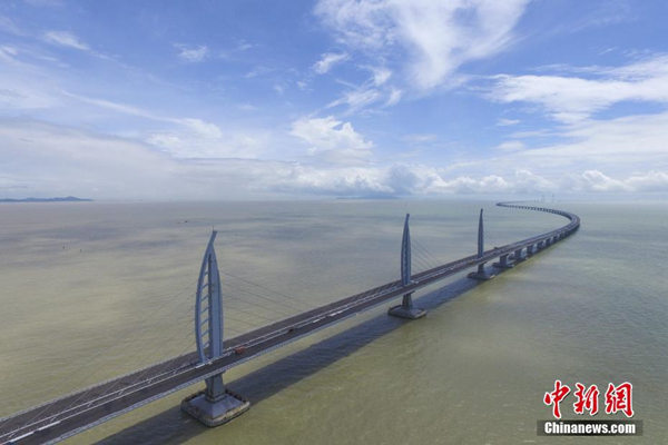 月7日,航拍港珠澳大桥江海直达船航道桥。当日,港珠澳大桥海底隧道正式贯通。