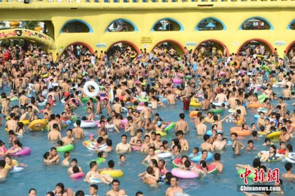 7月16日,重庆持续高温天气,当地一水上乐园内游客如下饺子。中新社记者陈超摄WRV阿根廷华人网