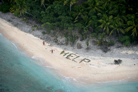 (中新网4月11日电) 据外媒报道,被困没有人烟的荒岛,如何求救?三名男子日前被困在太平洋一个小岛上三天三夜,他们在海岛上用棕榈叶拼出“Help”(救命)字样,成功引起侦察机注意,从而幸运获救。