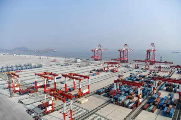 资料图片:上海洋山深水港四期工程码头(局部)。新华社记者申宏摄SwH阿根廷华人网
