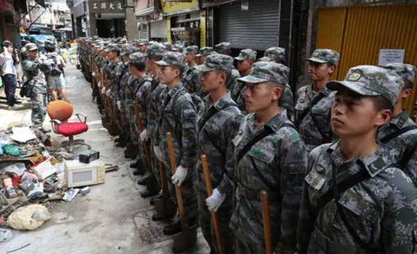 千名解放军战士协助澳门救助“天鸽”带来的灾害。(图片来源:香港《苹果日报》)6LN阿根廷华人网