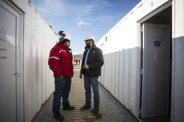 早晨5点半,睡眼惺忪的佩德罗·洛佩斯登上班车,前往100公里外的“基什内尔总统”电站先锋营地。半年前,电站招聘200名工人建造先锋营地,佩德罗和另外一百多名卡拉法特居民入选。他被分配到营地的库房管理工具和建材。