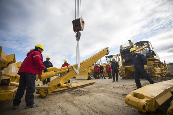 图为阿根廷技术工人在中国工程师的指导下装配中国山推推土机(新华社记者 叶书宏摄)