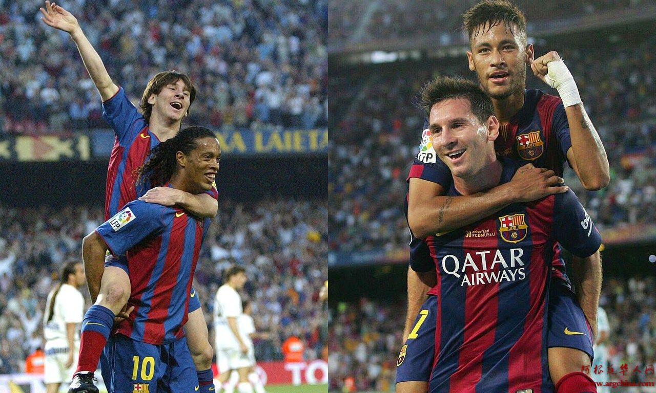 10年之前,一个巴西球王背着稚嫩的阿根廷人征战天下;10年之后,一个阿根廷球王背着稚嫩的巴西人征战天下,10年时光,小罗、梅西、内马尔上演足球史上最伟大的王者传承!