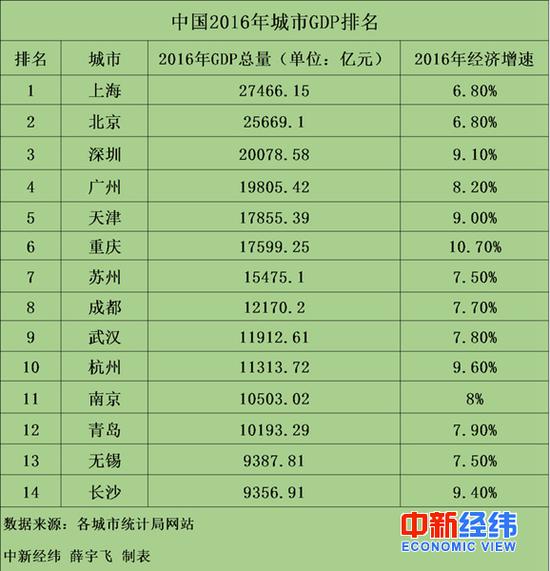 中新经纬客户端1月8日电中国万亿GDP城市再次扩围。无锡市政府1月7日宣布,预计2017年全市实现地区生产总值10500亿元,此前的1月2日,长沙市政府也宣布,地区生产总值超过1万亿元。据中新经纬客户端统计,加上无锡和长沙,中国GDP超过1万亿的城市达到了14个,其中,上海、北京、深圳的GDP总量都已迈过2万亿关口。