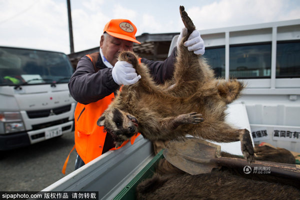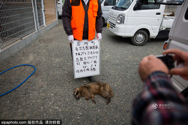 3月30日,在福岛东京电力公司附近住宅区收集的浣熊尸体。