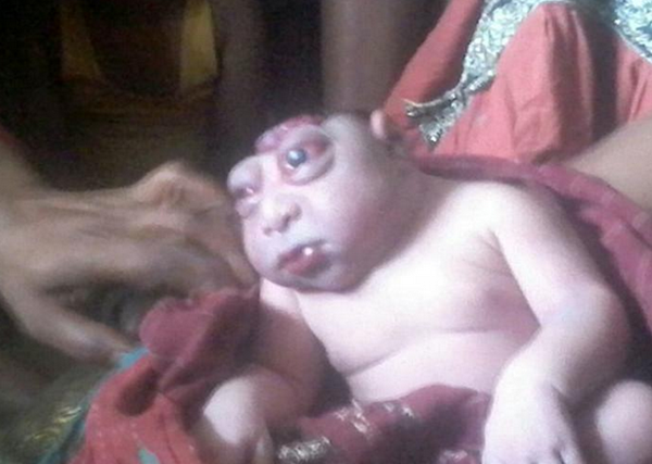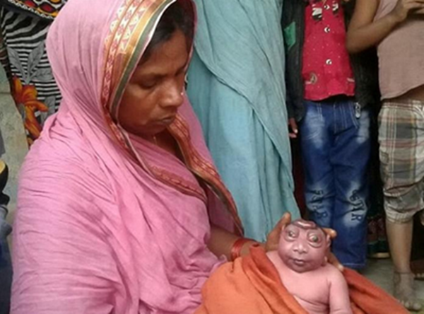 据英国《每日邮报》3月21日报道,印度女子卡利达·贝迦(Khalida Begum)在周一晚上诞下一子,然而他的样子却让所有人大吃一惊:他不仅没有大脑,还长有巨大的眼睛。这让卡利达十分害怕,一度拒绝给这个孩子喂奶,甚至想把他扔掉。
