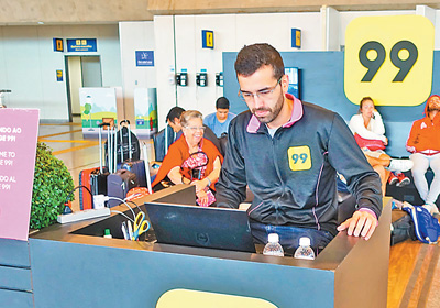巴西里约热内卢国际机场设有99公司服务区,供乘客在此叫车等候。图为正在工作的99公司员工。人民日报里约热内卢3月15日电同为发展中大国,中国和巴西在互联网领域合作潜力巨...