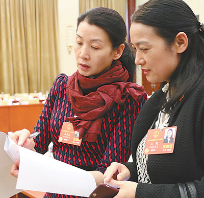 安徽代表团两位代表在会议期间讨论。本报记者韩俊杰摄 云南代表团的罗珺代表(左)在审议宪法修正案草案小组会上发言。本报记者陈斌摄贵州代表团举行小组会议,审议宪法修正案草案,雷...