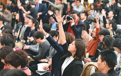 3月11日,十三届全国人大一次会议举行记者会。十三届全国人大一次会议秘书处法案组组长、全国人大常委会法工委主任沈春耀,法案组副组长、全国人大常委会法工委副主任郑淑娜就宪法...