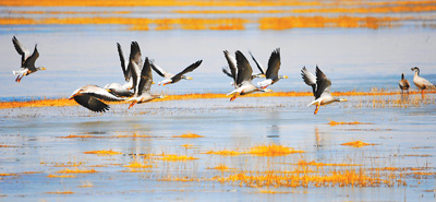 甘肃苏干湖保护区 生态美 百鸟汇