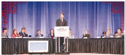 图为温哥华市长罗品信宣读正式道歉声明。 新华社记者梁森摄4月22日,加拿大温哥华市府、市议会在华埠举行特别会议,就历史上排华政策和歧视政策公开道歉。这句“迟来的道歉”,...