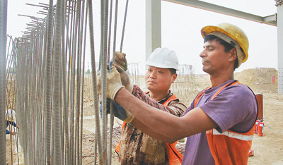 在印度北方邦大诺伊达地区,中印工人在建设中的OPPO智能手机生产基地施工。人民日报新德里4月27日电自2014年以来,中印经贸关系持续快速发展。2017年,中印双边贸易...