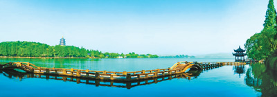 杭州西湖。 来源:汇图网图为参观者在2017杭州·云栖大会“未来智能餐厅”的触屏餐桌上体验隔空点餐。 龙 巍摄(人民视觉)西湖正在迎来“绿水碧于天,画船听雨眠”的季节,...